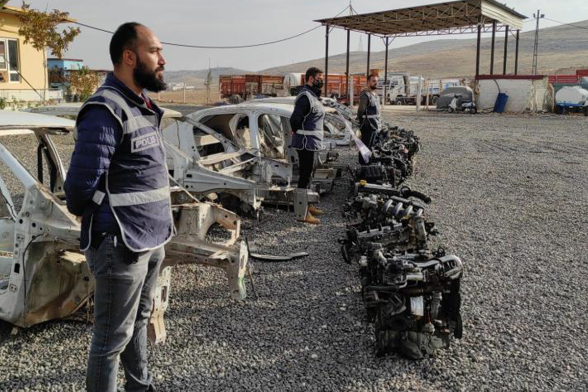 Edinilen bilgiye göre, geçtiğimiz 30 Kasım günü Eyyübiye ilçesindeki Evren Sanayi Sitesinde bazı işyerlerine operasyon düzenlendi. Şanlıurfa İl Emniyet Müdürlüğü Asayiş Şube Oto Hırsızlık Büro ekiplerinin, birçoğu yurt dışından getirilen maddi değeri yaklaşık 2 milyon TL olan araçları parçalanarak haksız gelir elde eden kişilere yönelik düzenlediği operasyonda gözaltına alınan 10 şüphelinin emniyetteki işlemleri tamamlandı.