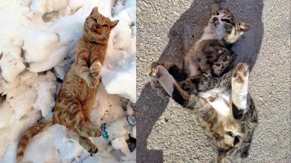 Cumhuriyet Mahallesi'nde donan kediler, vatandaşlar tarafından çöp konteynerine atıldı.