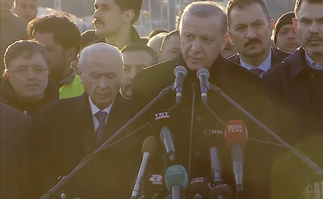 Vefat eden kardeşlerimize bir kez daha Allah'tan rahmet diliyorum. Millet olarak hepimizin başı sağ olsun. Devletimizin tüm imkanlarını depremi haber alır almaz harekete geçirdik. Olumsuz hava şartları ve deprem alanının genişliği çalışmalarımızı ilk etapta sekteye uğratsa da bu zorlu süreci kısa sürede aştık.