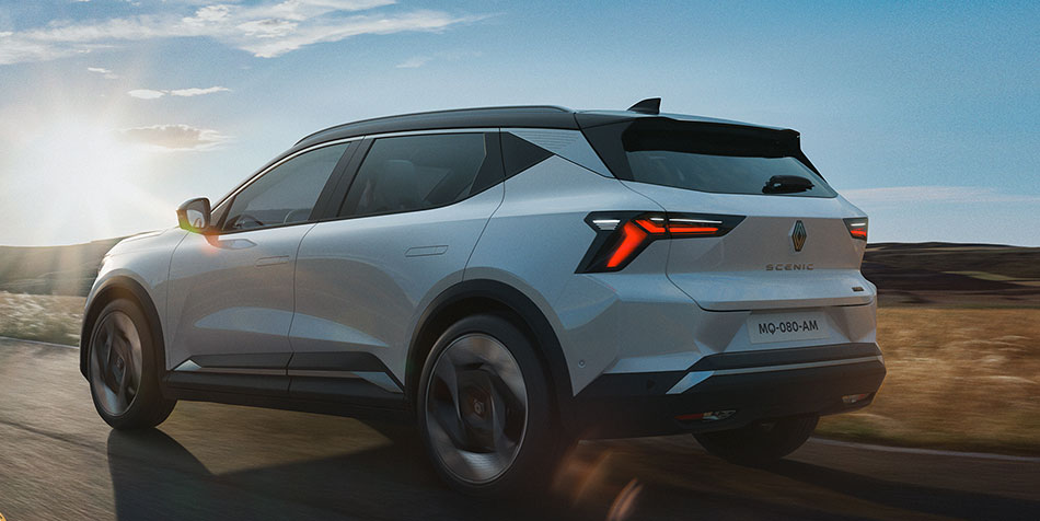 Medium AmpR platformu (eski adıyla CMF-EV) üzerinde geliştirilen ve tamamen elektrikli bir model olan Scenic E-Tech %100 Elektrikli, çok yönlülük arayan kullanıcılar için tasarlandı. Sıfır emisyona sahip, çevik, hafif (1.890 kg) ve kompakt (4,47 m uzunluk) özellikleriyle Scenic E-Tech %100 Elektrikli, şehir içi yollarda üstün performans sergiliyor. Scenic E-Tech %100 Elektrikli ayrıca uzun yolculuklar için 625 km'ye kadar menzil (WLTP), konfor, ferah iç mekan ve üstün teknolojileriyle gelişmiş bir sürüş deneyimi sunuyor.