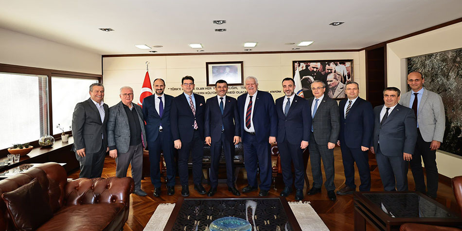“Maden Sektör Buluşması” kapsamında Denizli’ye giden Ege Maden İhracatçıları Birliği Başkanı İbrahim Alimoğlu ve beraberindeki heyet Denizli Valisi Ömer Faruk Coşkun ve Denizli Büyükşehir Belediye Başkanı Bülent Nuri Çavuşoğlu’nu makamlarında ziyaret ettiler.