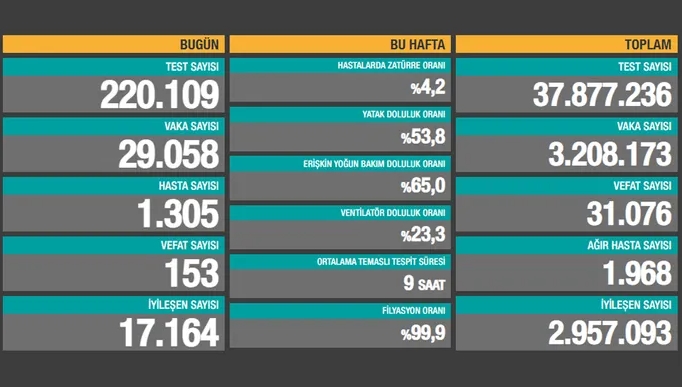 29 BİN 058 YENİ VAKA, 153 VEFAT