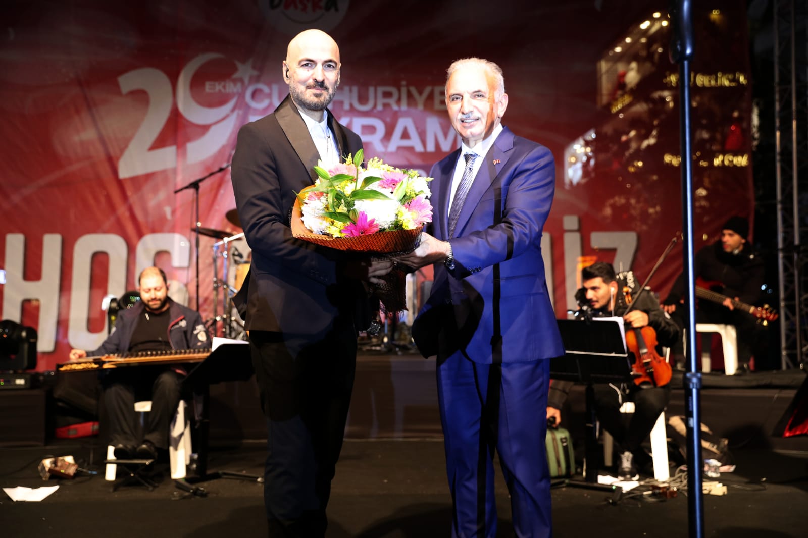 Kutlamaya Başkan İsmet Yıldırım da katıldı. Şarkıcı Soner Sarıkabadayı ve orkestra şefine plaket takdim eden Başkan Yıldırım, 29 Ekim Cumhuriyet Bayramı’nı kutlamak için Alemdağ Caddesi’ne akın eden Ümraniyelilere teşekkür etti. Başkan Yıldırım, “Bugün Cumhuriyet Bayramı’mızın 98. yılını kutluyoruz. Vatanımızı kurtaran başta Mustafa Kemal Atatürk olmak üzere tüm şehitlerimize ve gazilerimize Allah’tan rahmet diliyorum” dedi.