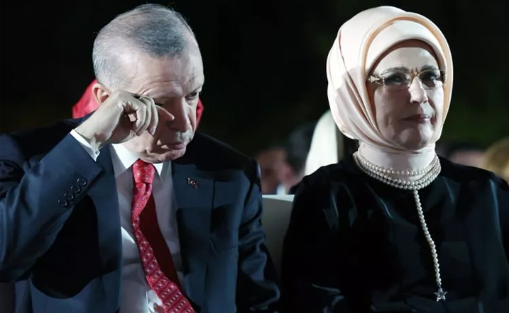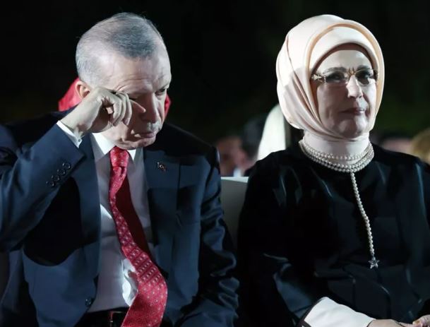 Eşi Emine Erdoğan ile programa katılan Cumhurbaşkanı Erdoğan gözyaşlarını silerek programı izlemeye devam etti.