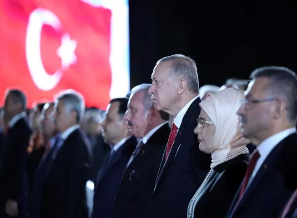 Cumhurbaşkanı Erdoğan, Cumhurbaşkanlığı Külliyesi'nde düzenlenen 30 Ağustos Zafer Bayramı Konseri'ne eşi Emine Erdoğan ile katıldı.