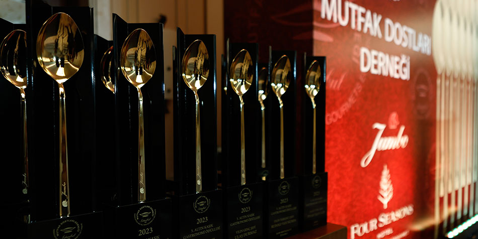 Four Seasons Sultanahmet ev sahipliğinde, Jumbo’nun katkılarıyla 17 Ocak 2024’te gerçekleşen 5. Altın Kaşık Gastronomi Ödülleri gecesinde on üç kategorideki ödüllerin kazananları açıklandı. Ödül gecesi; Türk gastronomi dünyasının önde gelen isimleri, basın mensupları ve kanaat önderlerinin de aralarında bulunduğu davetlilerin katılımı ile gerçekleşti.
