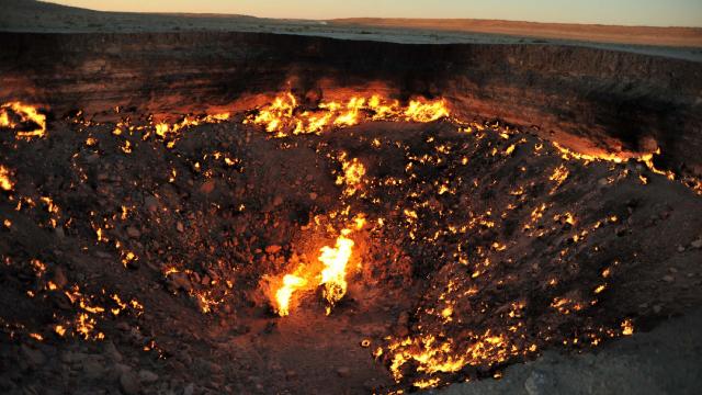 60 metre genişliğe ve 20 metre derinliğe sahip krater, içinden çıkan doğal gaz nedeniyle yaklaşık 50 yıldır yanmaya devam ediyor.