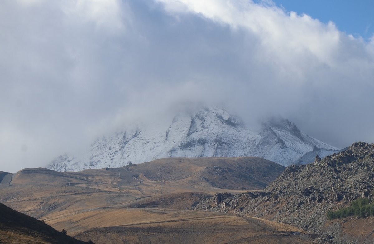 Kar yağışıyla beraber dağın 3 bin metreden yüksek kesimleri beyaz örtüyle kaplandı.