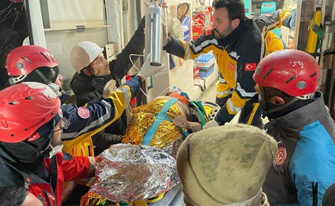 "Asrın felaketi" olarak nitelenen Kahramanmaraş merkezli 7,7 ve 7,6 büyüklüğündeki depremlerin etkilediği Adıyaman'da yıkılan binaların enkazlarında arama kurtarma çalışmaları sürüyor.