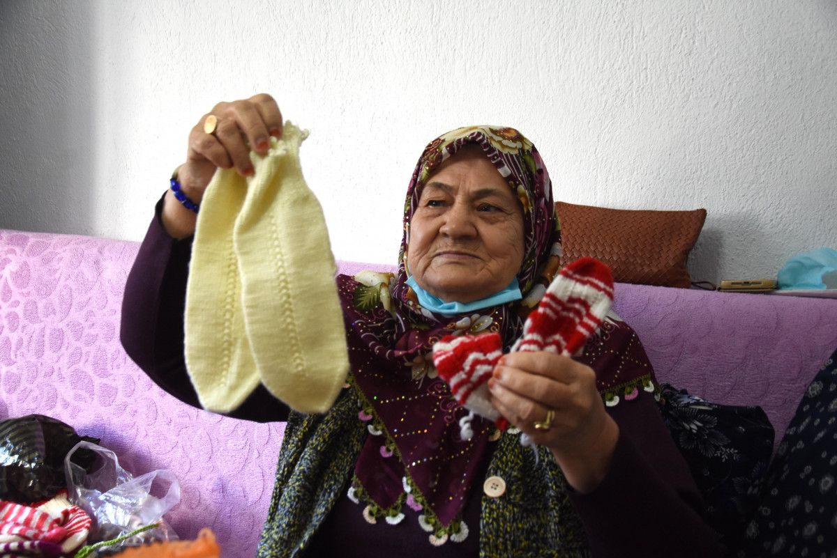 Eskişehir'in Tepebaşı ilçesine bağlı Şarhöyük Mahallesi’nde oturan 83 yaşındaki Ayşe Ertürk, bir süre önce evinde yün çorap örerek biriktirdi.