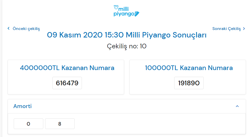 9 Kasım 2020 Milli Piyango Sonuçları