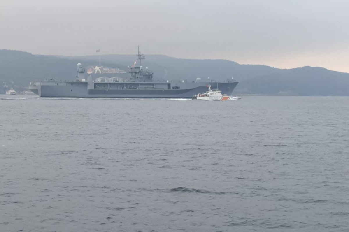 ABD savaş gemisinin boğaz geçişine, güvenlik amacıyla Sahil Güvenlik botu refakat etti.