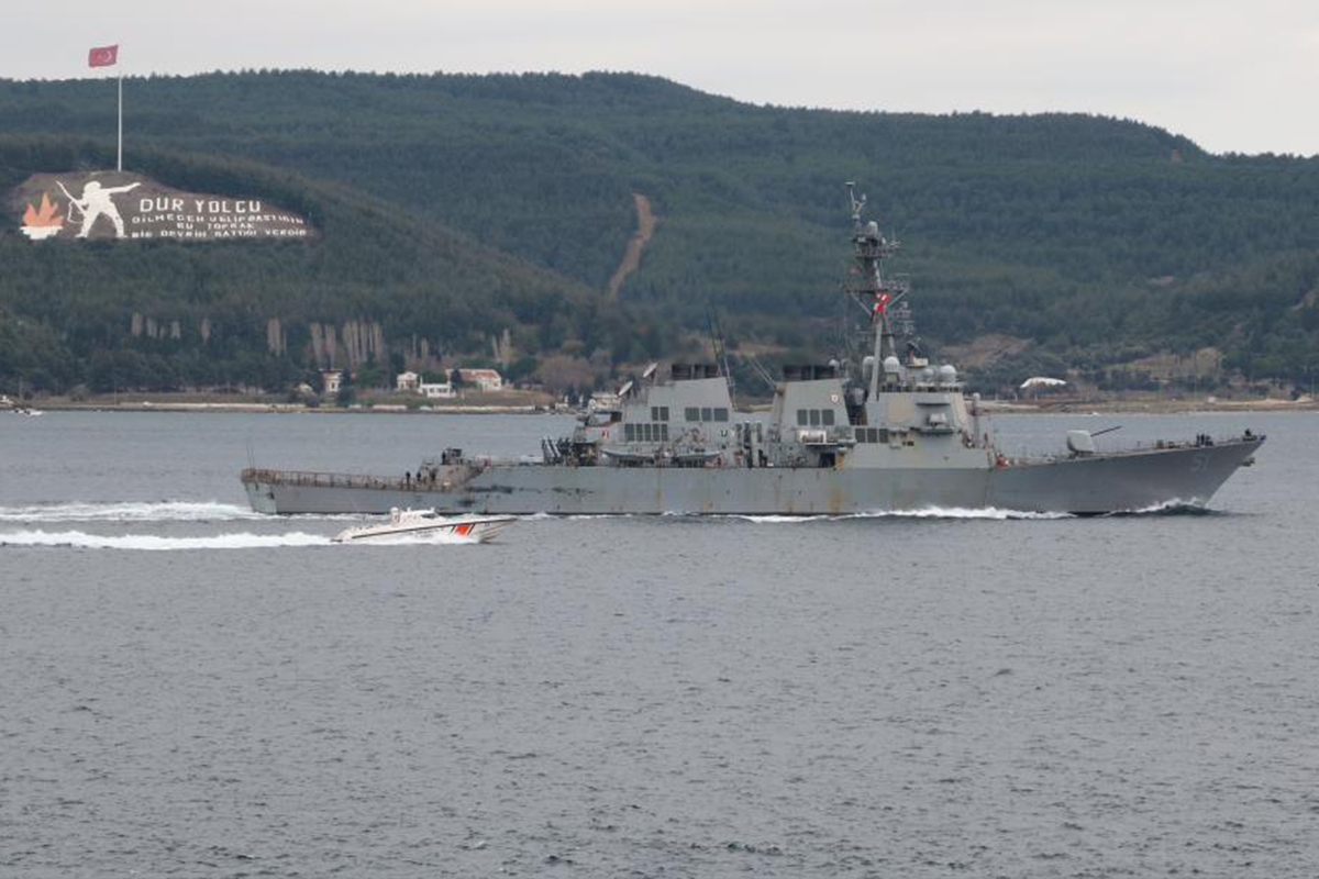 Kilitbahir Kalesi ve 'Dur Yolcu' sembolünü geçen savaş gemisi, Nara Burnu'nu dönerek, Marmara Denizi'ne doğru yol aldı. ABD savaş gemisine boğaz geçişi sırasında, Türk Sahil Güvenlik Botu refakat etti.