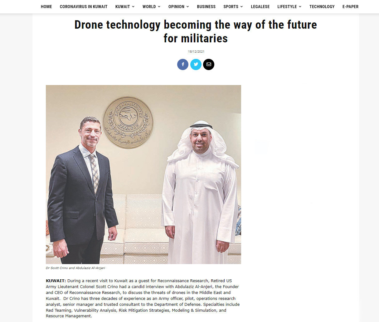 Amerikalı eski Yarbay ve ABD Savunma Bakanlığı’nın danışmanlarından Scott Crino, Kuveytli yayın kuruluşu Kuwait Times’a insansız hava araçları konusunda açıklamalarda bulundu. Türk İHA/SİHA’larına ayrı parantez açan ve örnek gösteren Crino, şunları söyledi: