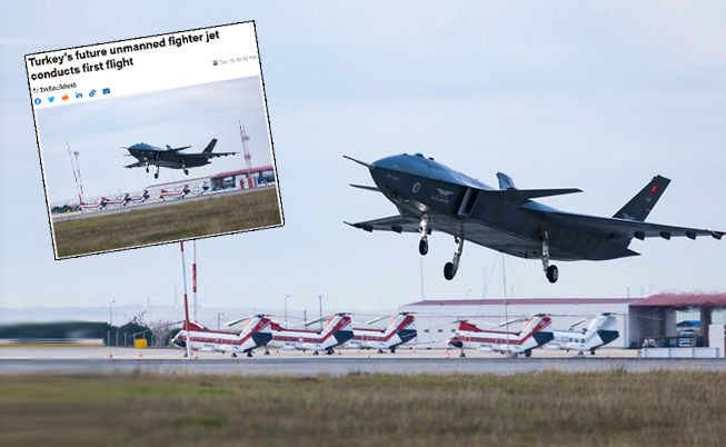 Savunma alanında prestij sahibi derginin internet sitesinde, Kızılelma'nın test uçuşu, "Türkiye'nin geleceğinin insansız savaş uçağı ilk uçuşunu gerçekleştirdi" başlığıyla duyuruldu.