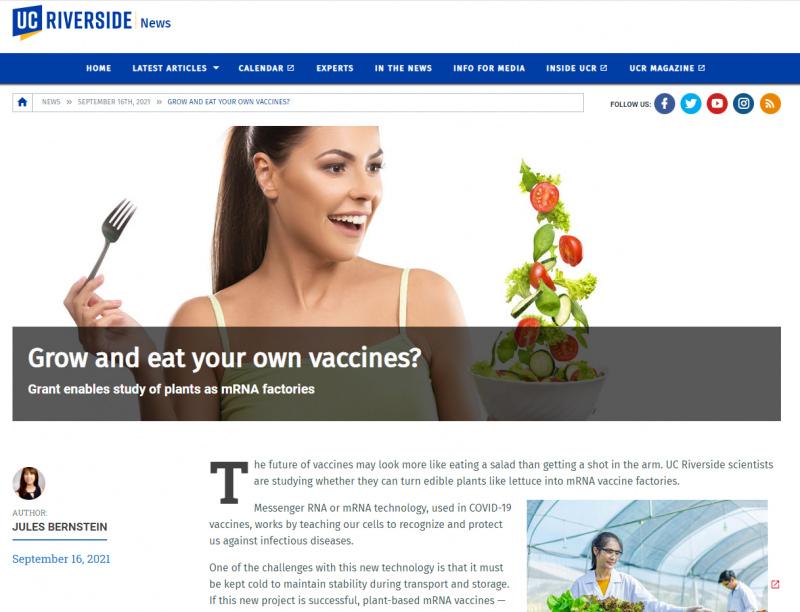 ABD'nin önde gelen eğitim kurumlarından California Riverside Üniversitesi'nde (UCR) hayata geçirilen yeni bir proje sayesinde insanlar, Kovid-19 aşılarını kendileri üretebilecek.