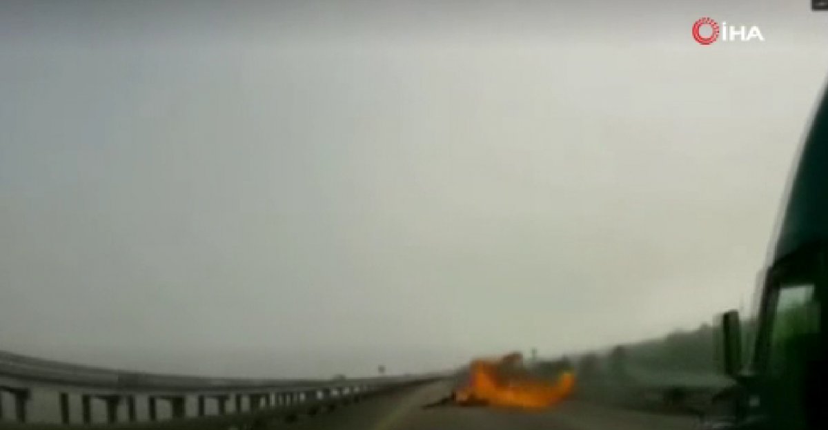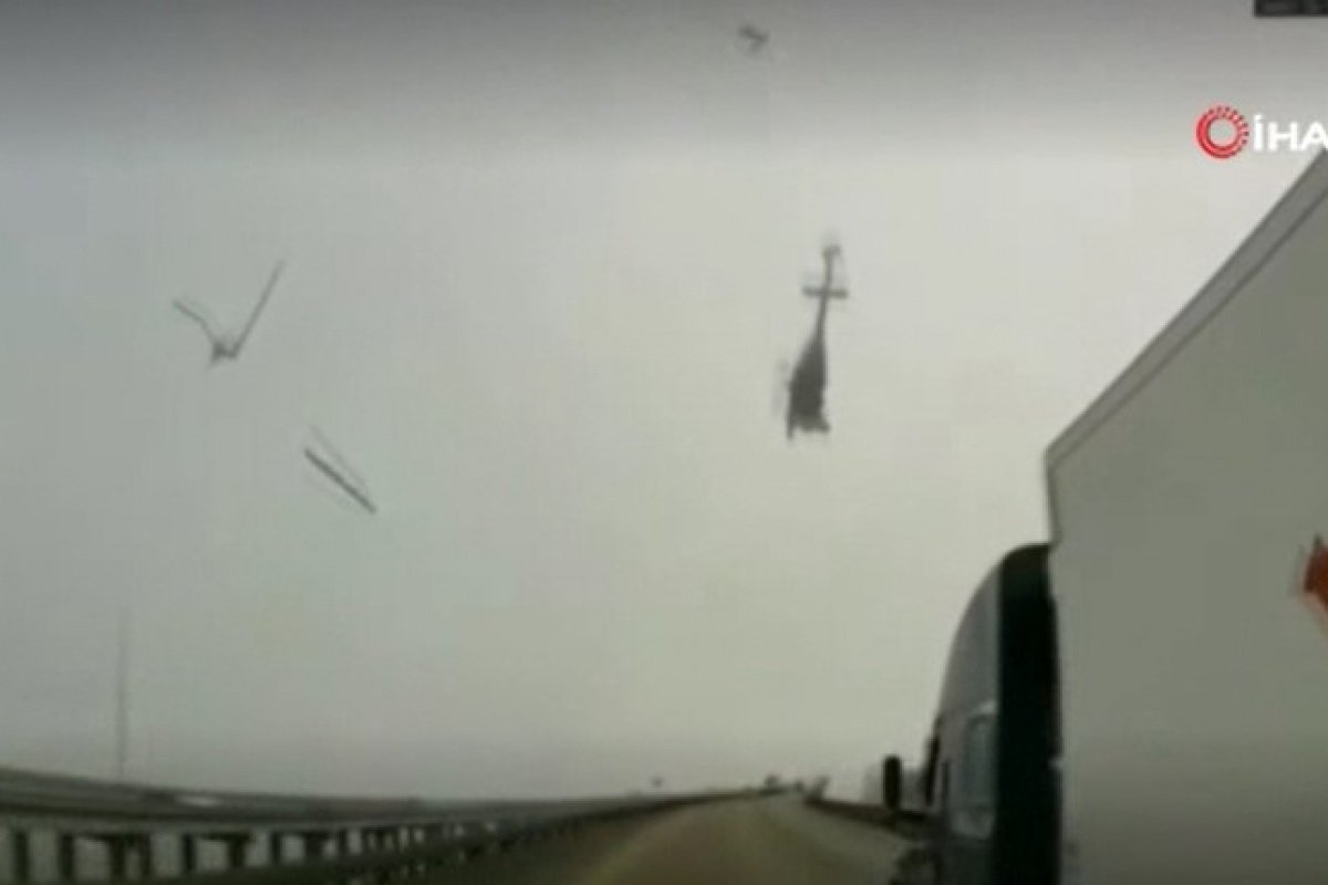 Savrularak düşen helikopeter, bir anda alev topuna döndü. Olay anı saniye saniye, o anda yolda seyir halinde olan bir aracın kamerasına yansıdı.