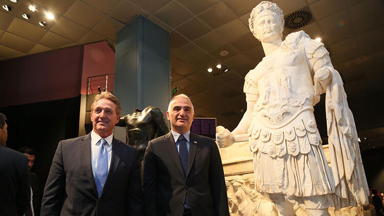 Yıllar önce Türkiye'nin çeşitli illerinden yurt dışına kaçırılan ve ABD'den iadesi sağlanan 12 eser için Kültür ve Turizm Bakanı Mehmet Nuri Ersoy, ABD Ankara Büyükelçisi Jeffry Flake, Antalya Valisi Ersin Yazıcı, bakanlık üst düzey yetkilileri ve birçok davetlinin katılımıyla Antalya Arkeoloji Müzesi'nde tören yapıldı. Müzede özel bir bölüm oluşturulan 12 eser, törenin ardından sergilenmeye açıldı.