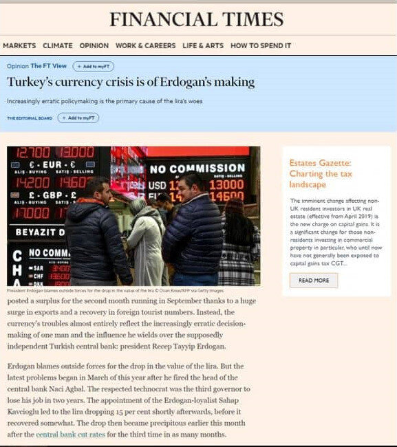 Döviz kurlarındaki dalgalanmaların ardından Financial Times gazetesi, Erdoğan'ı hedef almaya çalıştı.