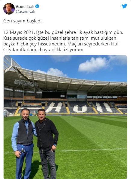 Ilıcalı paylaşımında, "Geri sayım başladı.. 12 Mayıs 2021. İşte bu güzel şehre ilk ayak bastığım gün. Kısa sürede çok güzel insanlarla tanıştım, mutluluktan başka hiçbir şey hissetmedim. Maçları seyrederken Hull City taraftarlarını hayranlıkla izliyorum. Deplasmanlarda gösterdikleri büyük desteğe hayranım. Ehab Allam çok değerli bir insan ve bize bu süreçte çok yardımcı oldu. Ona ve ailesine büyük saygı duyuyorum. Umarım bu süreç kısa zamanda tamamlanır ve benim bu hayalim gerçek olur" ifadelerini kullandı.