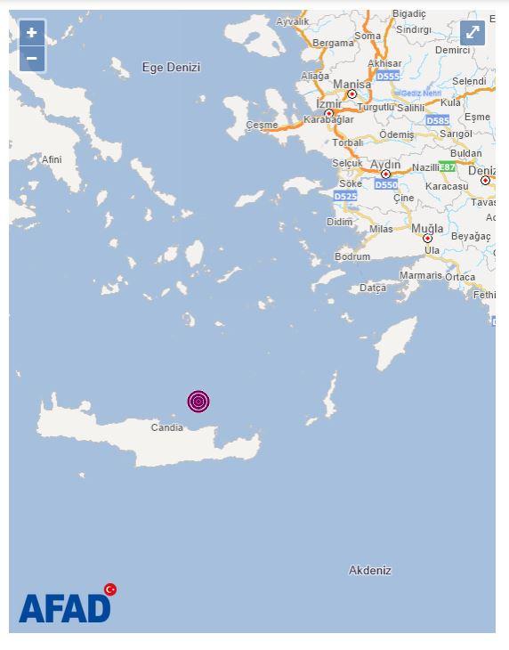Muğla'nın Bodrum ilçesine 216 km uzaklıktaki deprem, 6.78 km derinlikte gerçekleşti.