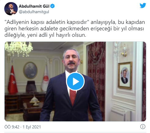 Adalet Bakanı Abdulhamit Gül, Twitter hesabından yaptığı açıklamada, "Adliyenin kapısı adaletin kapısıdır" anlayışıyla, bu kapıdan giren herkesin adalete gecikmeden erişeceği bir yıl olması dileğiyle, yeni adli yıl hayırlı olsun" ifadelerini kullandı.