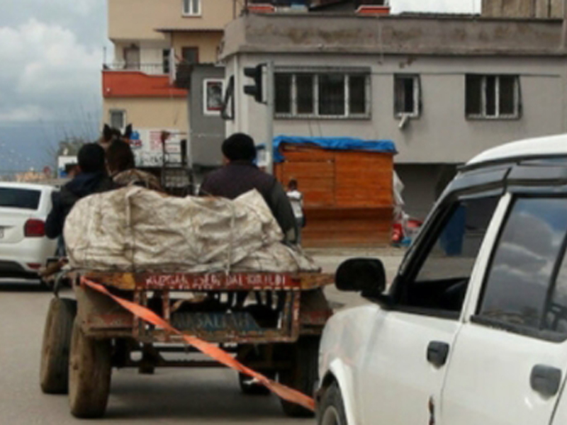 Adana'nın Merkez Yüreğir ilçesi Karataş Bulvarı'nda önceki gün yasak olmasına rağmen at arabasıyla hurdacılık yapan kimliği belirsiz 3 kişinin arızalı otomobili bağladıkları halatla çektiği görüldü.