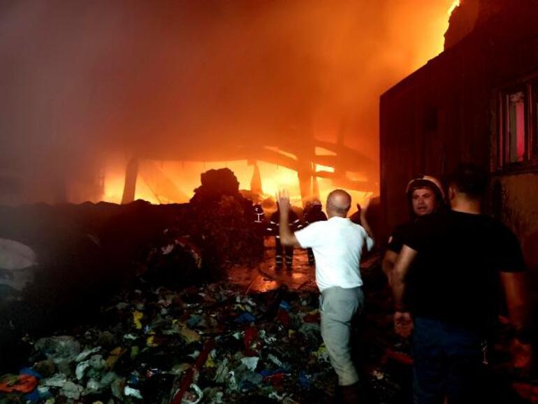 Plastik atık geri dönüşüm tesisindeki çalışanlar, fabrikanın depo kısmından dumanların yükseldiğini fark ederek durumu itfaiye ekiplerine bildirdi.