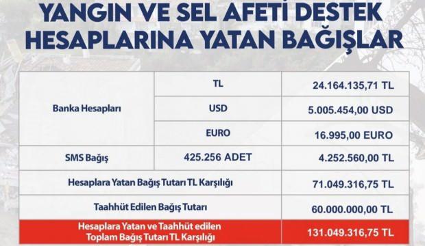 İçişleri Bakanı Süleyman Soylu, "425 bin 256 vatandaşımız #BenDeVarım diyerek AFAD koordinasyonunda (17 Ağustos 8:00 itibariye) yangın ve sel bölgelerine destek için 1866’ya SMS gönderdi. Toplam destek miktarı 3. gününde taahhütlerle birlikte 131 milyon 40 bin 316 TL oldu. Milletimizin yüce gönlüne müteşekkiriz" açıklamasında bulundu.