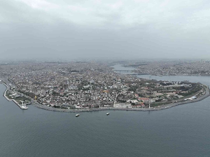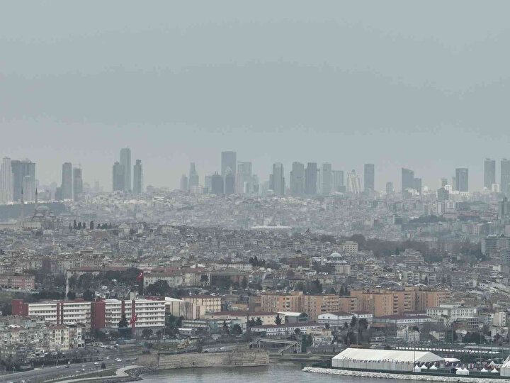 İstanbul semalarını kaplayan çöl tozu havadan görüntülendi.