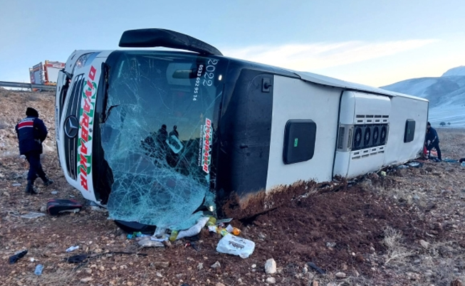 Diyarbakır'dan Bodrum'a giden sürücüsü ve plakası henüz öğrenilemeyen yolcu otobüsü, Dinar Haydarlı yol ayrımı Karabedir Kavşağı'nda devrildi.
