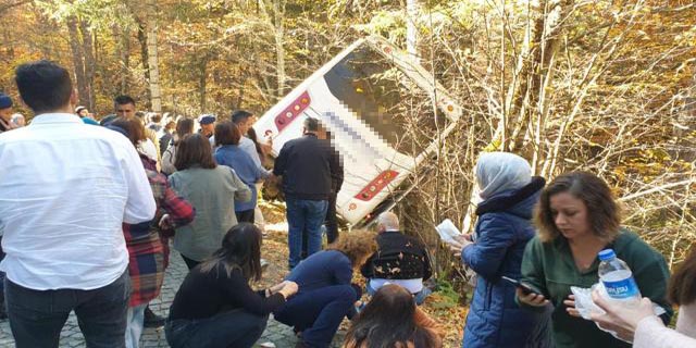 Sürücüsünün kimliği öğrenilemeyen tur midibüsü, Yedigöller Milli Parkı'ndan Bolu istikametine seyir halindeyken kontrolden çıktı.