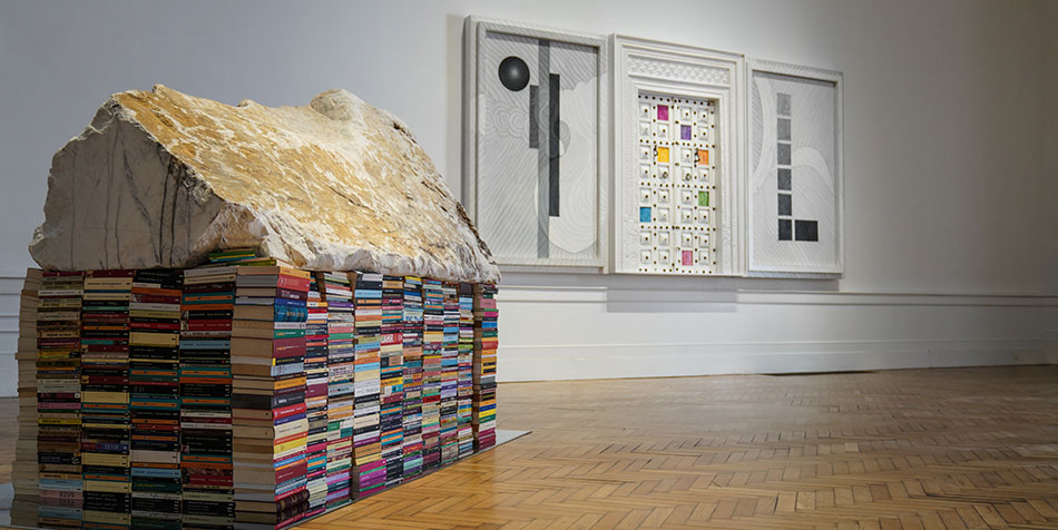 Serginin dikkat çeken bir diğer yapıtı ise “Hafıza Tepesi”. Binlerce lastik ayakkabıyla oluşturulan bu anıtsal enstalasyon, klasik savaş tablolarının sergilendiği salonda yer alıyor. Eser, kolektif belleğin taşıyıcısı olarak geçmişin izlerini bugünün gözüyle yorumluyor.