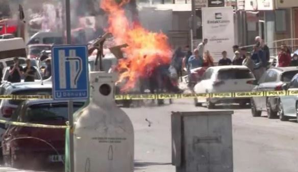 Çantanın bırakıldığı yerin karşısında esnaf olan Murat Demir, “Biz burada arkadaşla beraber çalışıyoruz. Buradan geçerken, kafası kapüşonlu kapalı genç yaşlarda bir kişinin, buradaki atık kumbaranın üzerinde çantayı taktığını gördük. Çantayı takmakla biraz uğraştı. Polis arabası da karşı taraftan geçiyordu. Şüpheli burada ters istikamette hızlı adımlarla gidince şüphelendik. Burada da AK Parti binası var, şüphelendik. Polis merkezine haber verdik. Ondan sonra polis arkadaşlar geldi. Şüpheli paketi patlattılar. İçinden bir şey çıkmadı herhalde. Çok şükür kimseye bir şey olmadı” dedi.