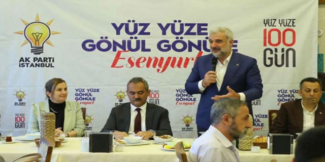 Ayrıca “Yüz Yüze 100 Gün” kampanyasının 8’inci hafta programları da dolu dolu geçti. Milli Eğitim Bakanı Mahmut Özer Esenyurt’u ziyaret etti. İlk olarak ilçe teşkilat mensuplarıyla buluşan Bakan Özer, daha sonra ilçede yapılacak yeni eğitim yatırımlarını yerinde inceledi. Bir demir fabrikasında staj yapan meslek lisesi ve mesleki eğitim merkezi öğrencileri ile bir araya gelip birlikte yemek yedi. İş yerlerine ziyaretlerde bulunarak esnaflarla sohbet etti. AK Nokta’yı ziyaret edip vatandaşlarla bir araya geldi.