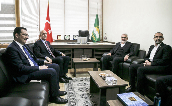 HÜDA PAR'ı ziyaret eden AK Parti Genel Başkanvekili Numan Kurtulmuş açıklama yapıyor.