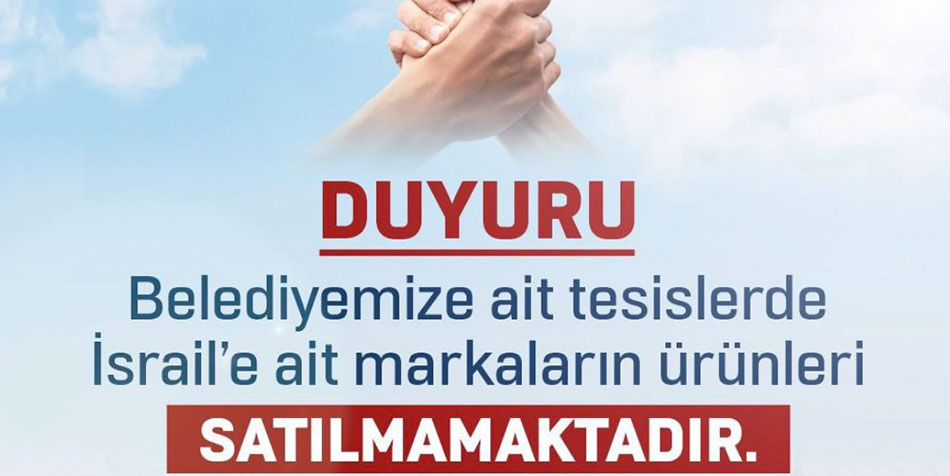 Bir aydır kadın çocuk, genç yaşlı demeden herkesi katleden eli kanlı katil İsrail devleti dünyanın gözü önünde savaş suçu işleyip insan haklarını hiçe sayarken sözde medeni Avrupa ülkeleri yaşanan insanlık dramına karşı durmak yerine çanak tutmaya devam ediyor. Yaşanan soykırıma Cumhurbaşkanı Recep Tayyip Erdoğan liderliğindeki Türkiye dahil birkaç ülke tepki gösterirken AK Partili ilçe belediyelerinden mazlum Filistin halkına destek olmak adına örnek olabilecek bir adım atıldı. İlçe belediyeler tarafından atılan adımı AK Parti Ankara İl Başkanı Hakan Han Özcan duyurdu. AK Partili İlçe Belediyelerinden terör devleti İsrail’ karşı örnek bir adım atıldı. AK Partili ilçe belediyeleri tarafından İsrail menşeili ürünleri satışını durdurma kararı aldı. Alınan kararı AK Parti Ankara İl Başkanı Hakan Han Özcan duyurdu.