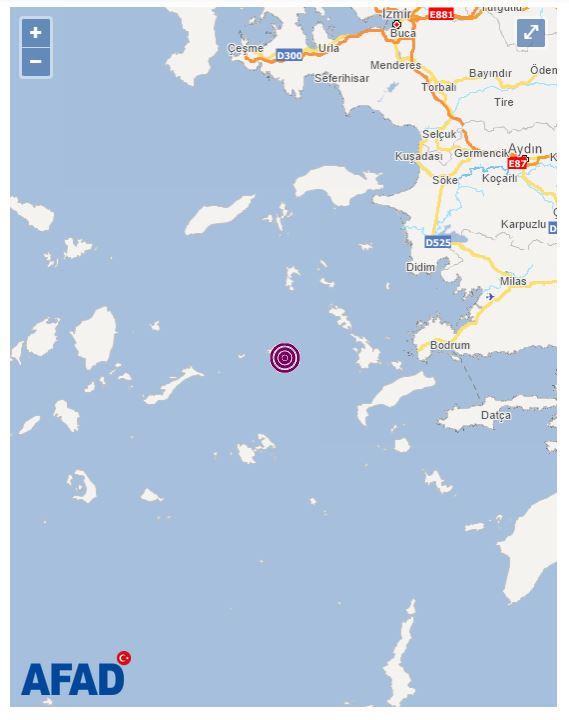 AFAD, Adalar Denizi'nde Bodrum'a 58.93 km uzaklıkta 3.8 şiddetinde bir deprem meydana geldiğini açıkladı.