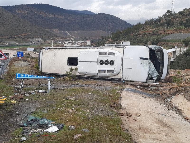 Gülnar ilçesinde, Akkuyu Nükleer Güç Santrali'nde (NGS) çalışan işçileri taşıyan Murat Çakmak idaresindeki 07 ERL 29 plakalı otobüs, Sipahili Mahallesi Mersin-Antalya kara yolunda henüz belirlenemeyen nedenle devrildi. Şoför dahil araçtaki 16 kişiden 15'i yaralandı.