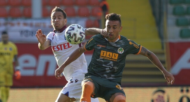 Alanyaspor, Karadeniz ekibi Trabzonspor'u Bahçeşehir Okulları Stadı'nda ağırladı. Karşılaşmanın ilk yarısında gol sesi çıkmadı. Ancak ikinci yarıda hırsla oynayan takımlardan Alanyaspor, İngiliz futbolcu Steven Caulker'in 49. dakikada attığı gol ile 1-0 öne geçmeyi başardı.