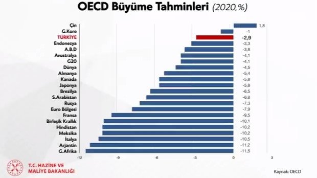 OECD verilerine göre, Çin ve Güney Kore'den sonra pandemiden en az etkilenecek 3. ülke olarak Türkiye gösterildi.