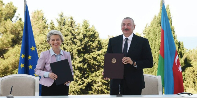 Azerbaycan Cumhurbaşkanı İlham Aliyev ve AB Komisyonu Başkanı Ursula von der Leyen tarafından Azerbaycan ile AB arasında "Avrupa Komisyonu tarafından temsil edilen Avrupa Birliği ile Azerbaycan Cumhuriyeti arasında enerji alanında stratejik ortaklığa dair mutabakat zaptı" imzalandı. Aliyev ve von der Leyen, imza töreninin ardından ortak basın toplantısı düzenledi. Azerbaycan ve AB arasında enerji alanındaki aktif iş birliğinin 15 yılı aşkın bir geçmişe sahip olduğunu belirten Aliyev, “Bugünkü anlaşma aramızda imzalanan ilk belge değil. 2006 yılında mutabakat zaptı ve 2011'de ise Güney Gaz Koridoru'yla ilgili ortak bildiri imzaladık. Dolayısıyla iyi bir geçmişimiz ve başarılarımız var. Azerbaycan'ın ileri sürdüğü AB ve ortaklarımız tarafından desteklenen enerji projeleri, Avrupa'nın enerji haritasını tamamen değiştirdi” dedi.