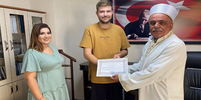 Müftü Vekili Acar, Müslüman olan Musa'ya hayırlı, mutlu bir yaşam dileklerini iletirken merasim sonunda 'İhtida Belgesi'ni takdim etti.