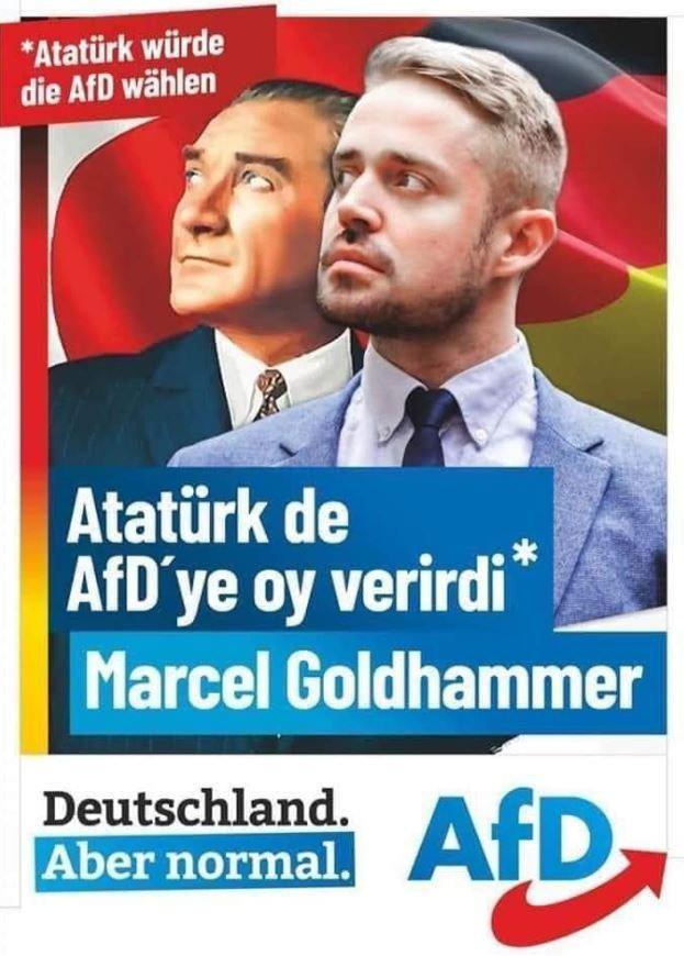 Eski bir CDU'lu olan, "AfD'deki Yahudiler" isimli örgütün yönetiminde yer alan Goldhammer adına, "Atatürk de AfD'ye oy verirdi" yazılı bir seçim afiş çıktı ve bunun sosyal medyada yayılmasını sağlandı.