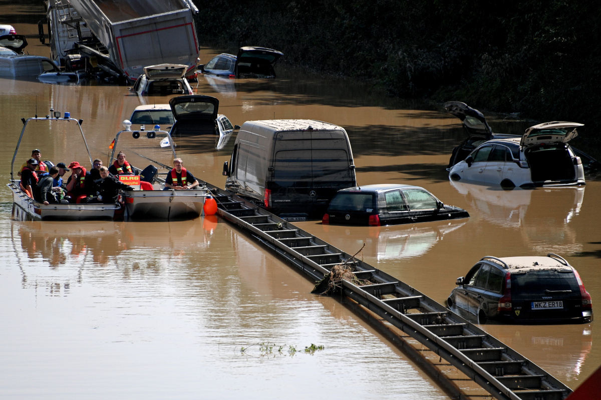 İkinci Dünya Savaşı'ndan bu yana en kötü doğal afetlerden birinin yaşandığı Almanya'da sel felaketinin bilançosu artıyor. Rheinlan-Pfalz eyaletinde sel nedeniyle hayatını kaybedenlerin sayısı 98'e yükselirken, Kuzey Ren Vestfalya eyaletinde ise can kaybı 43'te kaldı. Toplam ölü sayısının 141'e ulaştığı Almanya'da afet bölgelerinde 15 bin kişilik ekip görev yaparken, arama-kurtarma çalışmalarına ordu da destek veriyor. Selin vurduğu bölgelerde elektrik ve su tedarikiyle ilgili sıkıntılar devam ediyor. Suyun çekildiği bölgelerde selin sürüklediği enkaz yığınıyla tıkanan cadde ve sokakların temizlenmesi için çalışmalar yürütülüyor.
