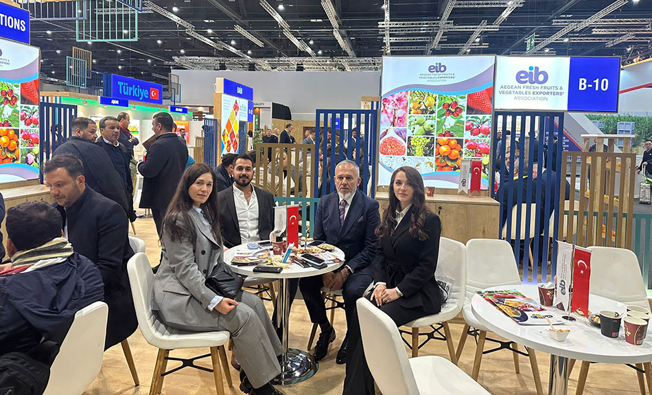Birlikleri Türkiye milli katılım organizasyonuyla 38 Türk firması katılım sağlarken, 16 firma fuara bireysel olarak iştirak etti. Fuar sırasında Türkiye pavyonunu Türkiye’nin Berlin Büyükelçisi Ahmet Başar Şen, Berlin Başkonsolosu Okan Şanlı ve Ticaret Müşaviri Mehmet Safa Saral ziyaret ederek, Türk firmalarına Almanya pazarı hakkında bilgi paylaşımında bulundular. Berlin Fruit Logistica Fuarı’nda Ege Yaş Meyve Sebze İhracatçıları Birliği’ni temsil eden Ege Yaş Meyve Sebze İhracatçıları Birliği Başkan Yardımcısı Cengiz Balık, Büyükelçi Şen, Başkonsolos Şanlı ve Ticaret Müşaviri Saral’a Ege İhracatçı Birlikleri’nin ABD pazarında Türk gıda ürünlerinin tanıtımını yaptığı Turkish Tastes isimli TURQUALITY Projesi hakkında bilgi verdi. Turkish Tastes isimli kitabımızı hediye etti. Berlin Fruit Logistica Fuarı’nda EYMSİB Yönetim Kurulu Üyeleri Hüseyin Vural Güleç ve Vildan Akgedik’te EYMSİB’i temsil ettiler.