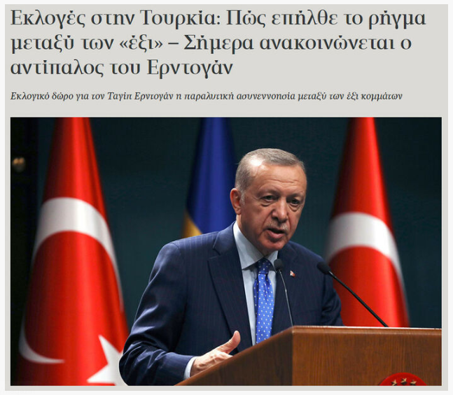 Yunanistan basınından Kathimerini gazetesi, "Altı parti arasındaki felç edici tutarsızlık, Erdoğan'a seçim hediyesi." dedi. Haberde, muhalefette yaşananlar aktarıldı: