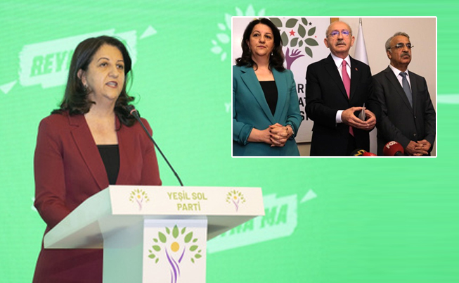 HDP ve seçime listelerinden gireceği Yeşil Sol Parti, seçim bildirgesini açıkladı. HDP Eş Genel Başkanları Pervin Buldan ve Mithat Sancar ile Yeşil Sol Parti Eş Sözcüleri Çiğdem Kılıçgün Uçar ve İbrahim Akın’ın açıkladığı beyannamede; Millet İttifakı ortak cumhurbaşkanı adayı ve CHP Genel Başkanı Kemal Kılıçdaroğlu’na dönük kapalı destek mesajları yer aldı. Bildirgede, “Demokratik Anayasa” denilerek, Kılıçdaroğlu’nun öncülüğünde toplanan 6’lı Masa’nın güçlendirilmiş parlamenter sistem modeline selam gönderildi. Kılıçdaroğlu’nun “Selahattin Demirtaş ve Osman Kavala’yı serbest bırakacağım” vaadi de “İnfaz rejimini adil ve eşit hale getireceğiz” ifadesiyle bildirgede kendine yer buldu.