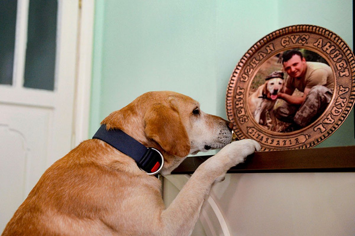 Zeytin Dalı Harekatı bölgesindeki üsse yönelik terör saldırısında şehit düşen Veteriner Uzman Çavuş Ahmet Akdal'ın birlikte görev yaptığı ve aynı saldırıda yaralanan mayın arama köpeği "Atmaca"nın, Akdal'la çekilen fotoğrafına bakışı da katılımcılardan yoğun ilgi gördü.