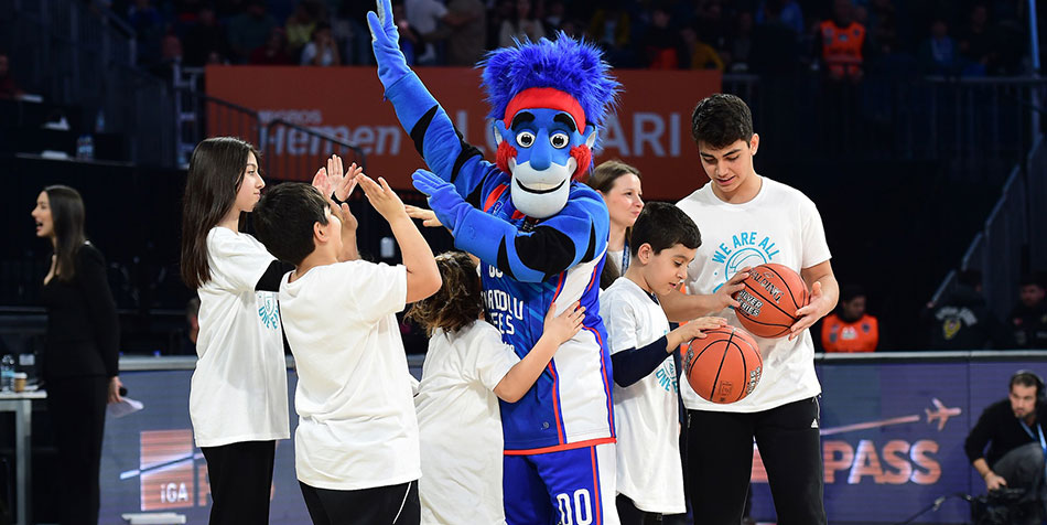 Karşılaşmanın devre arasında ise sekiz hafta boyunca basketbolun temel becerilerini öğrenen çocuklar parkeye ilk adımını attı. İki farklı takıma ayrılan çocuklar, Anadolu Efes’in sevimli maskotu Çaylak ile Sinan Erdem Spor Salonu’nu dolduran binlerce insanın tezahüratları eşliğinde sekiz haftanın ardından yeteneklerini sergilediler.